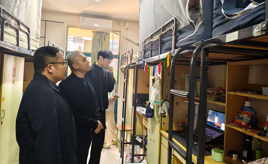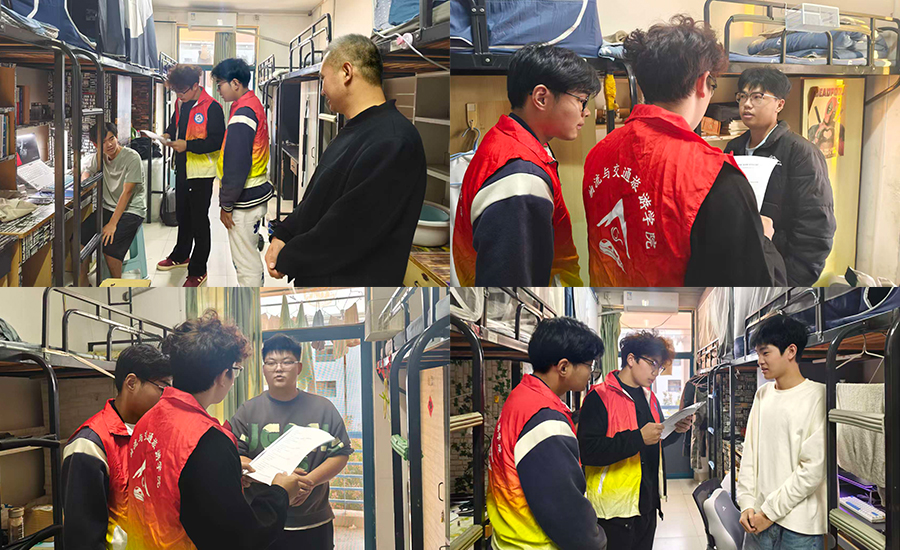 为深入贯彻落实校园安全工作要求,切实保障学生人身与财产安全,营造安全稳定的住宿环境,近日,物流与交通旅游学院党总支书记何振华、党总支副书记孟英伟带队、学生党支部书记张松和驻站辅导员石翔宇组成专项检查组,深入学生公寓开展安全巡查走访活动,以“实地排查 + 互动教育” 的形式筑牢校园安全防线。