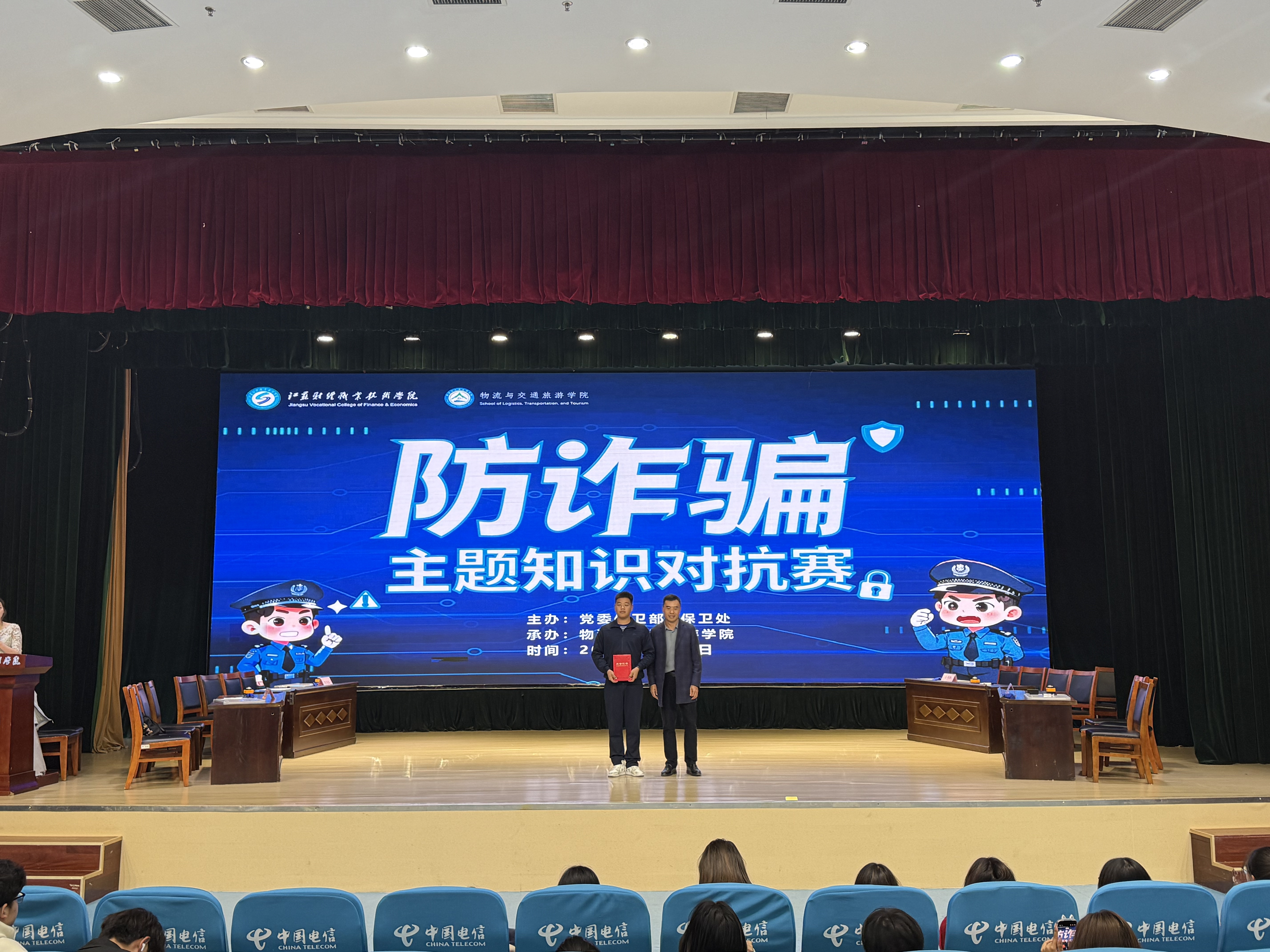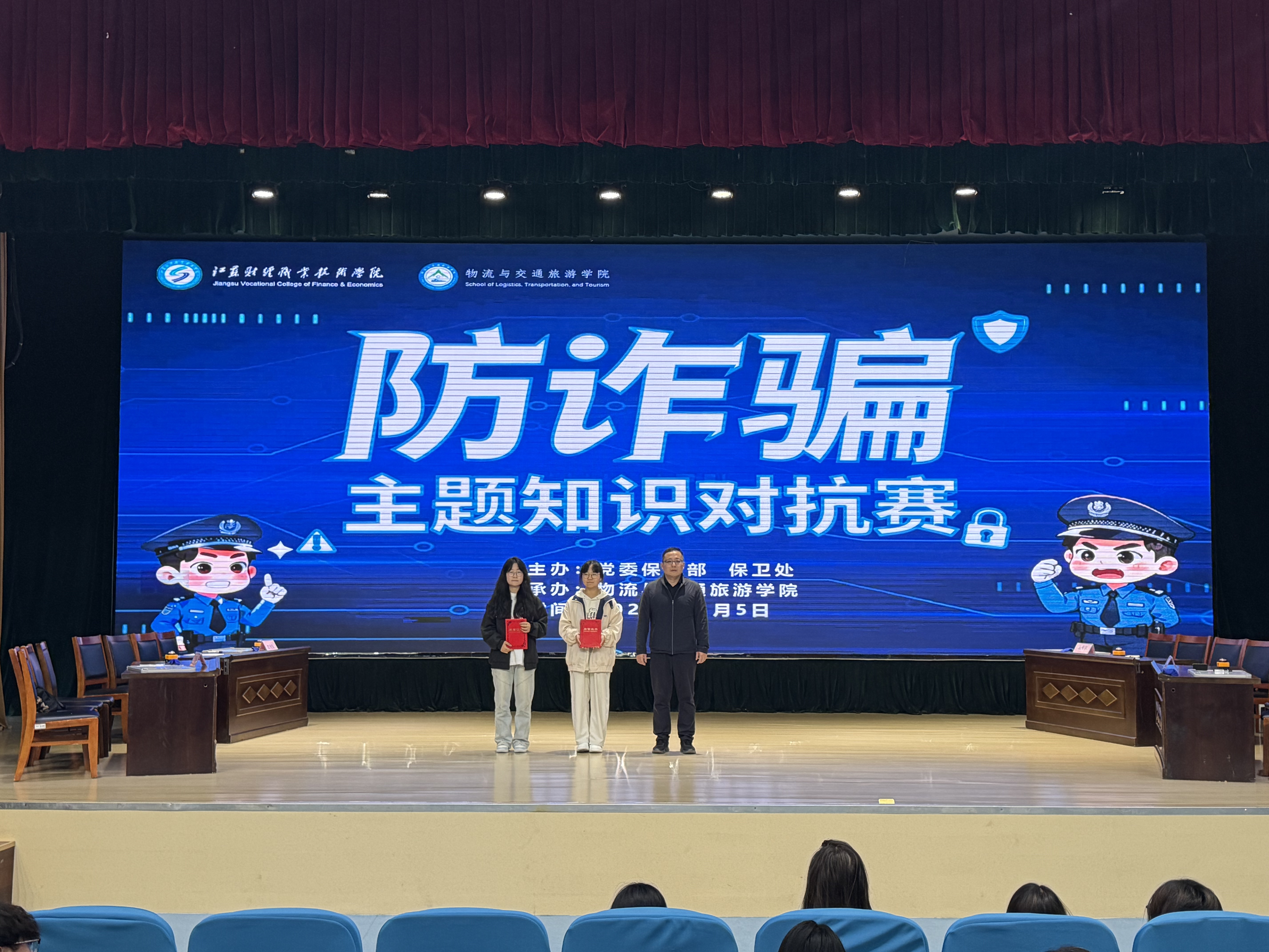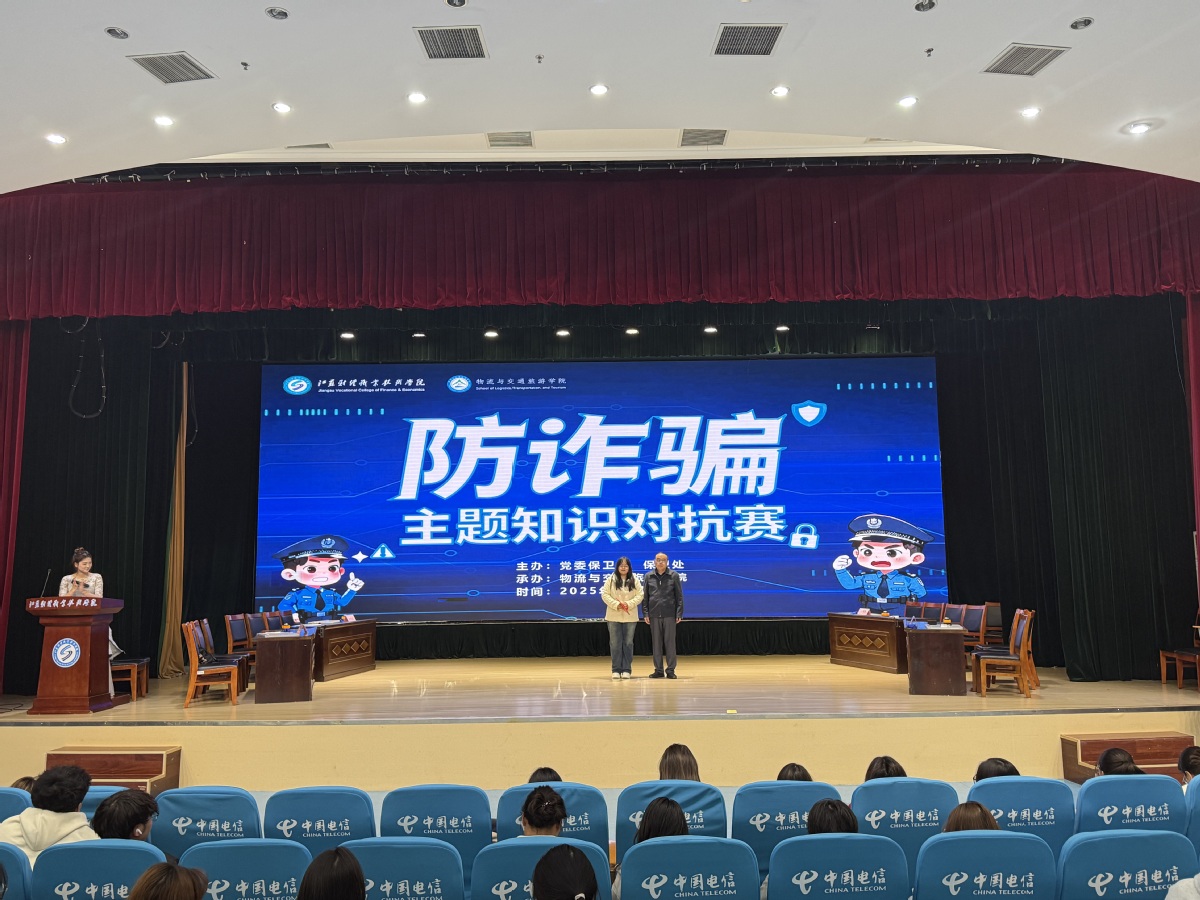 为提升全体师生反诈防骗意识,守护师生财产安全与校园和谐稳定,近日,由党委保卫部、保卫处主办、物流与交通旅游学院承办的“防诈骗”主题知识对抗赛顺利举行。金融学院、物流与交通旅游学院、智能工程技术学院、粮食与食品药品学院四支代表队同台竞技,展现扎实的反诈知识储备。
