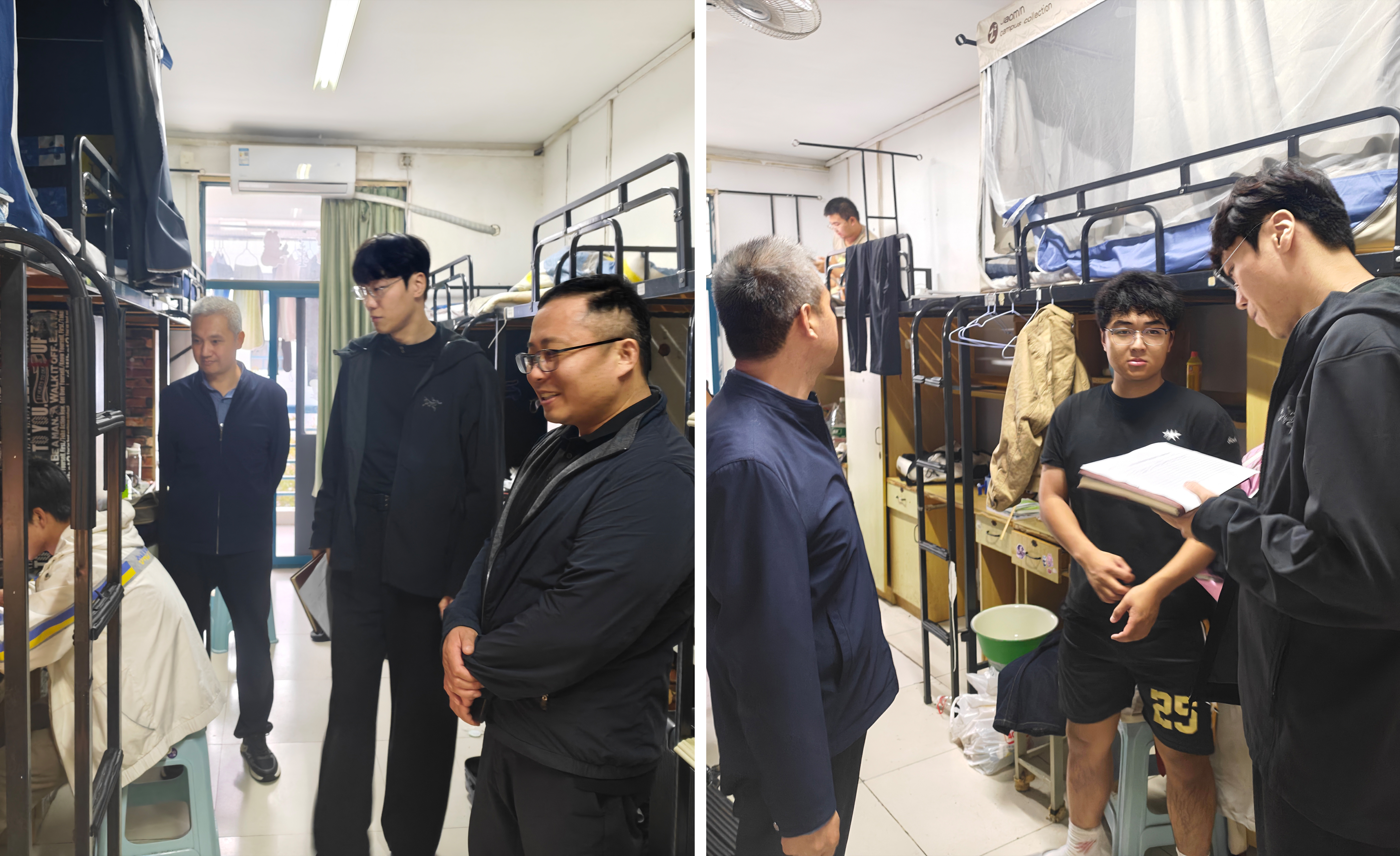 学院党总支书记何振华、党总支副书记孟英伟、学生党支部书记张松、学生社区驻站辅导员石翔宇组成专项排查小组,重点对东五公寓进行实地检查。排查小组逐一走进宿舍,仔细查看宿舍内用电安全、消防设施、卫生状况及物品摆放等情况,与学生亲切交流,询问住宿过程中遇到的问题与困难,并反复叮嘱学生要提高安全防范意识,杜绝各类安全隐患,共同维护宿舍的安全与整洁。经全面排查,东五公寓整体情况良好,未发现重大安全隐患。