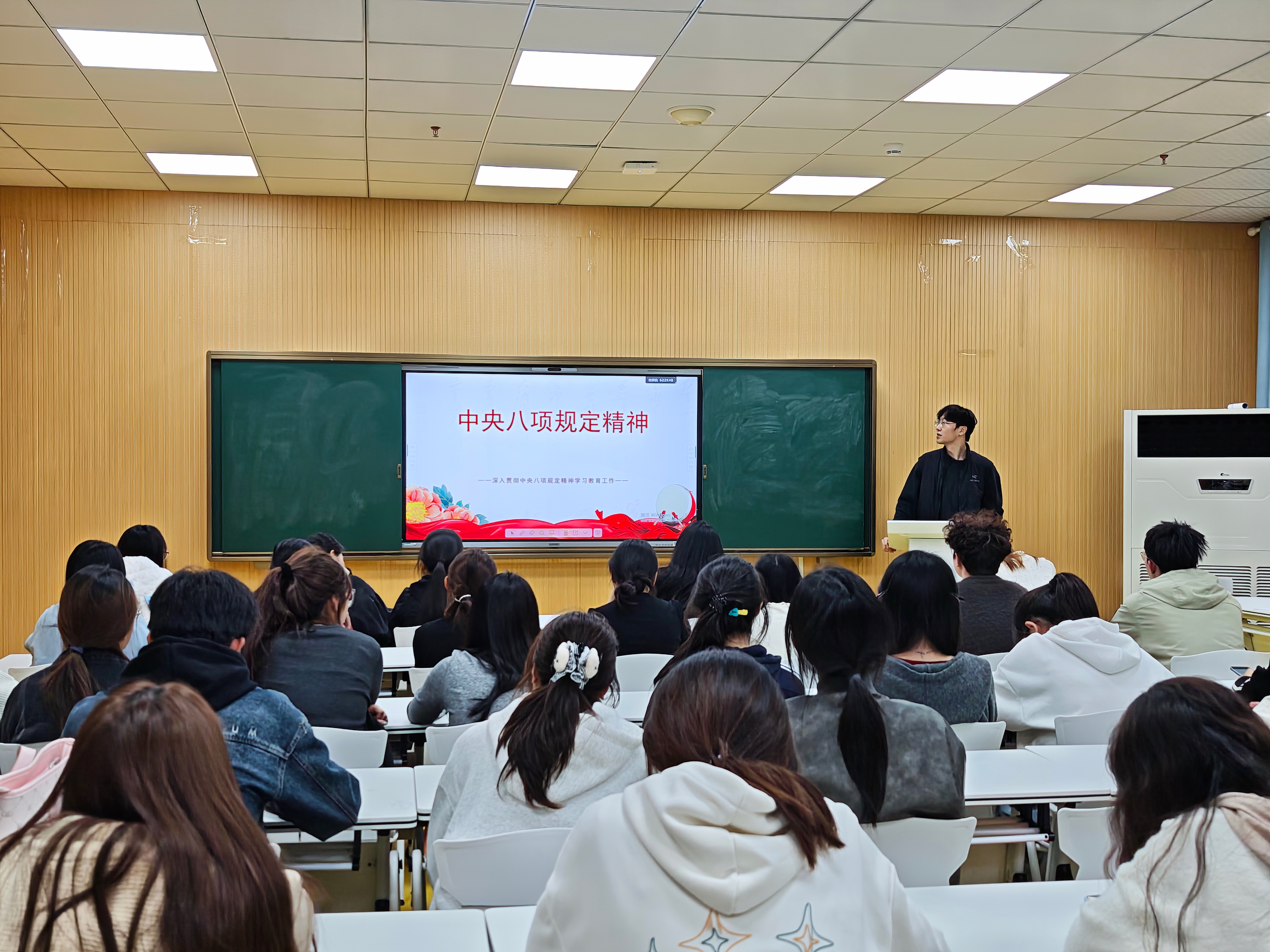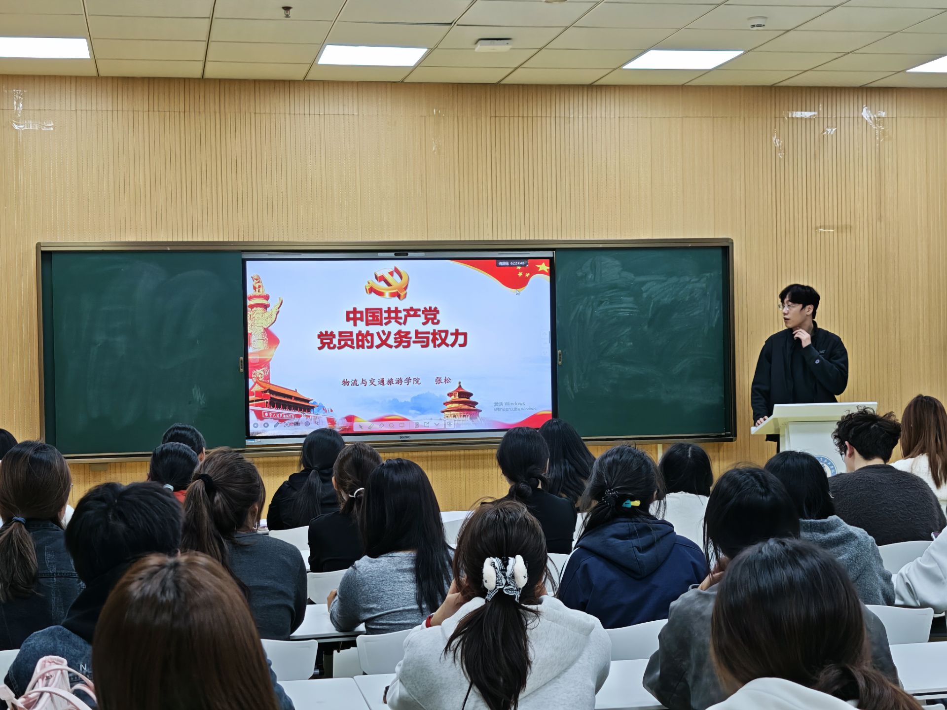 为引导学院入党积极分子筑牢纪律根基、端正入党初心,近日,物流与交通旅游学院学生党支部在大学生五育中心思政工作室开展深入贯彻中央八项规定精神学习教育专题党课。本次党课由学生党支部书记张松主讲,40 余名入党积极分子参与学习。