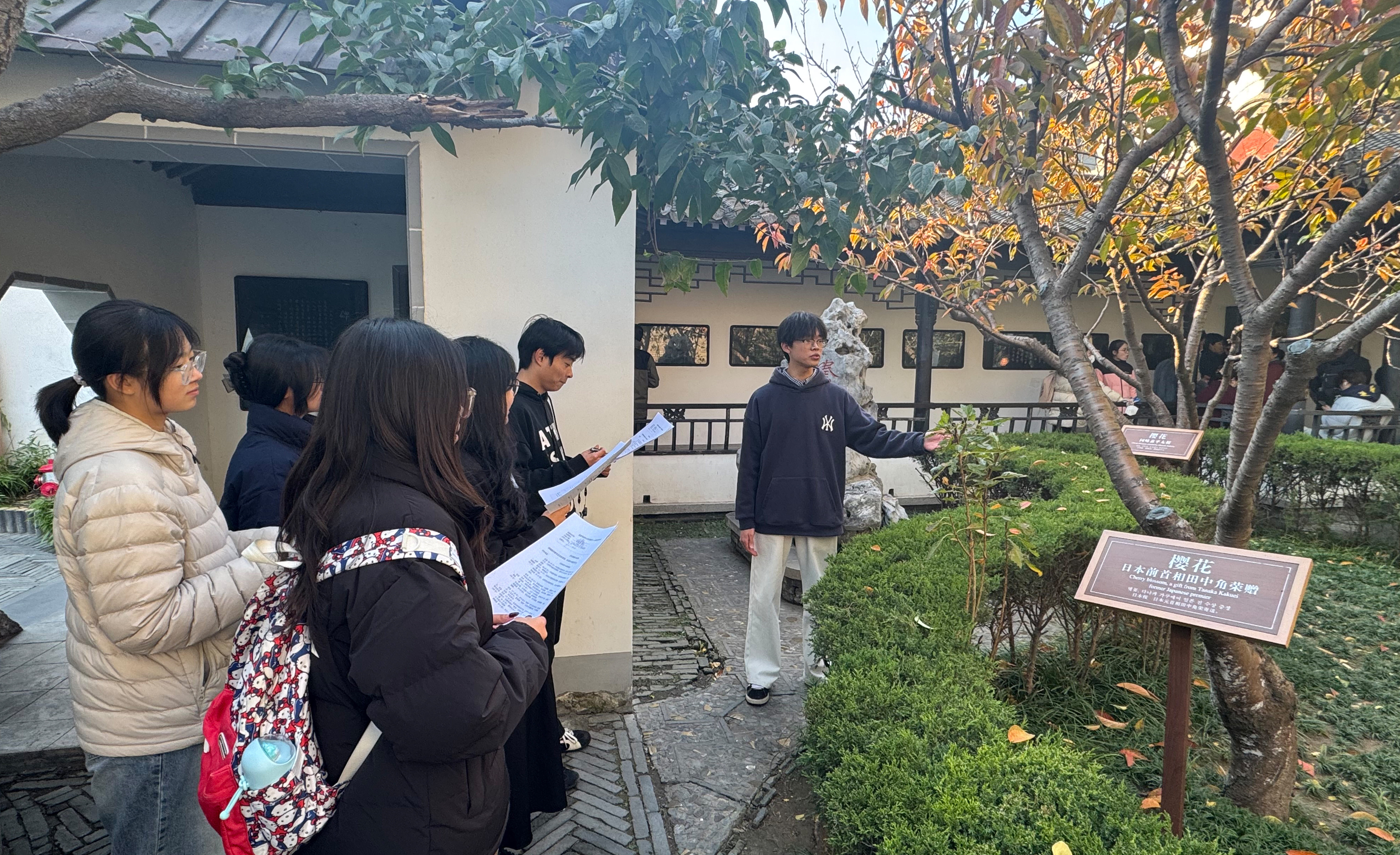 活动于上午9:30正式启动,首站抵达具有深厚历史底蕴的清晏园。在“实践练兵”环节,学生分为A、B两组,轮流担任讲解员与观察员,围绕园内小景点展开现场讲解与即时互评。同学们在真实场景中锻炼语言表达与临场应变能力,教师团队则引导学生进行微型复盘,通过“一条优点+一条建议”的方式,促进教学相长。随后,学生们观摩了清晏园金牌讲解员的专业讲解,从故事化叙事、节奏把控到肢体语言,全面学习讲解技巧。同学们认真记录“印象最深刻的3个讲解瞬间”,在对比中反思自我,提升专业认知。