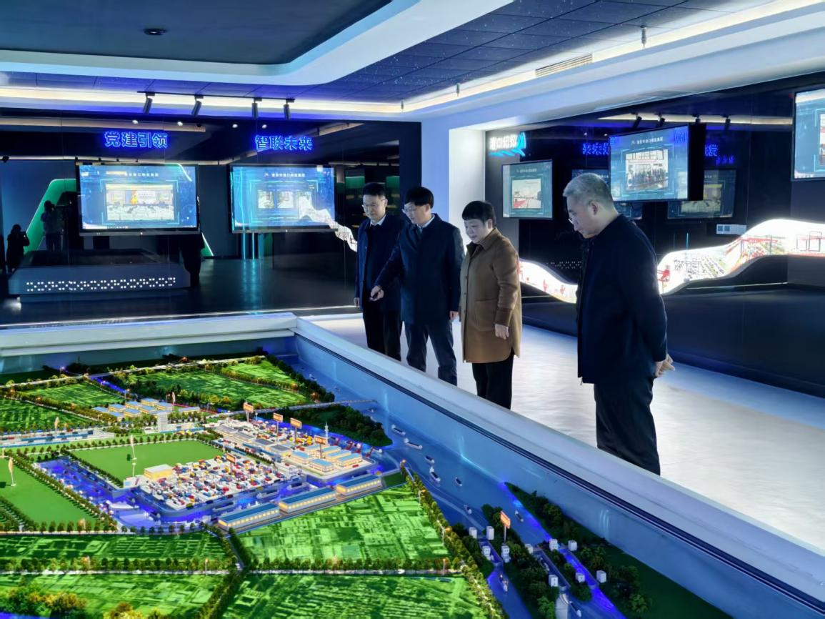 在集团领导陪同下,学院一行参观了淮安国际航运中心信息化展厅,通过直观的数据与影像资料,深入了解淮安港的发展历程、运营现状及智慧物流建设成果。随后,众人登临中心楼顶俯瞰港区全景,对淮安港的规模布局与繁忙作业景象有了切身感受。