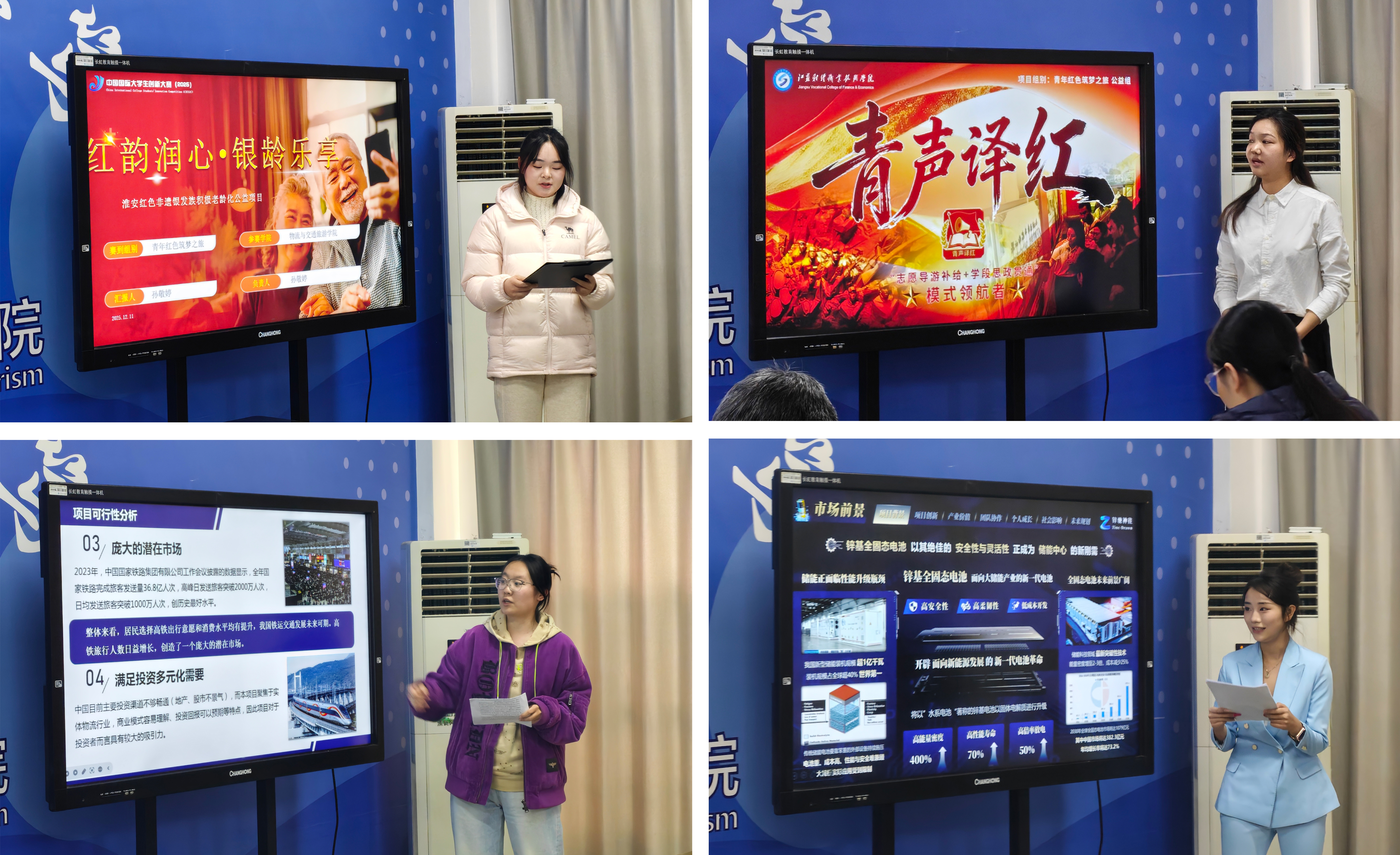 经过激烈比拼与评委的专业评审,最终 “青声译红” 与 “红韵润心・银龄乐享” 项目因分数相同,共同斩获一等奖;“星语星动 ——AI 赋能下的孤独症儿童精准艺体疗愈计划” 荣获二等奖;“途捎物流:高铁行李共享与跨城物流一体化服务平台” 获得三等奖。
