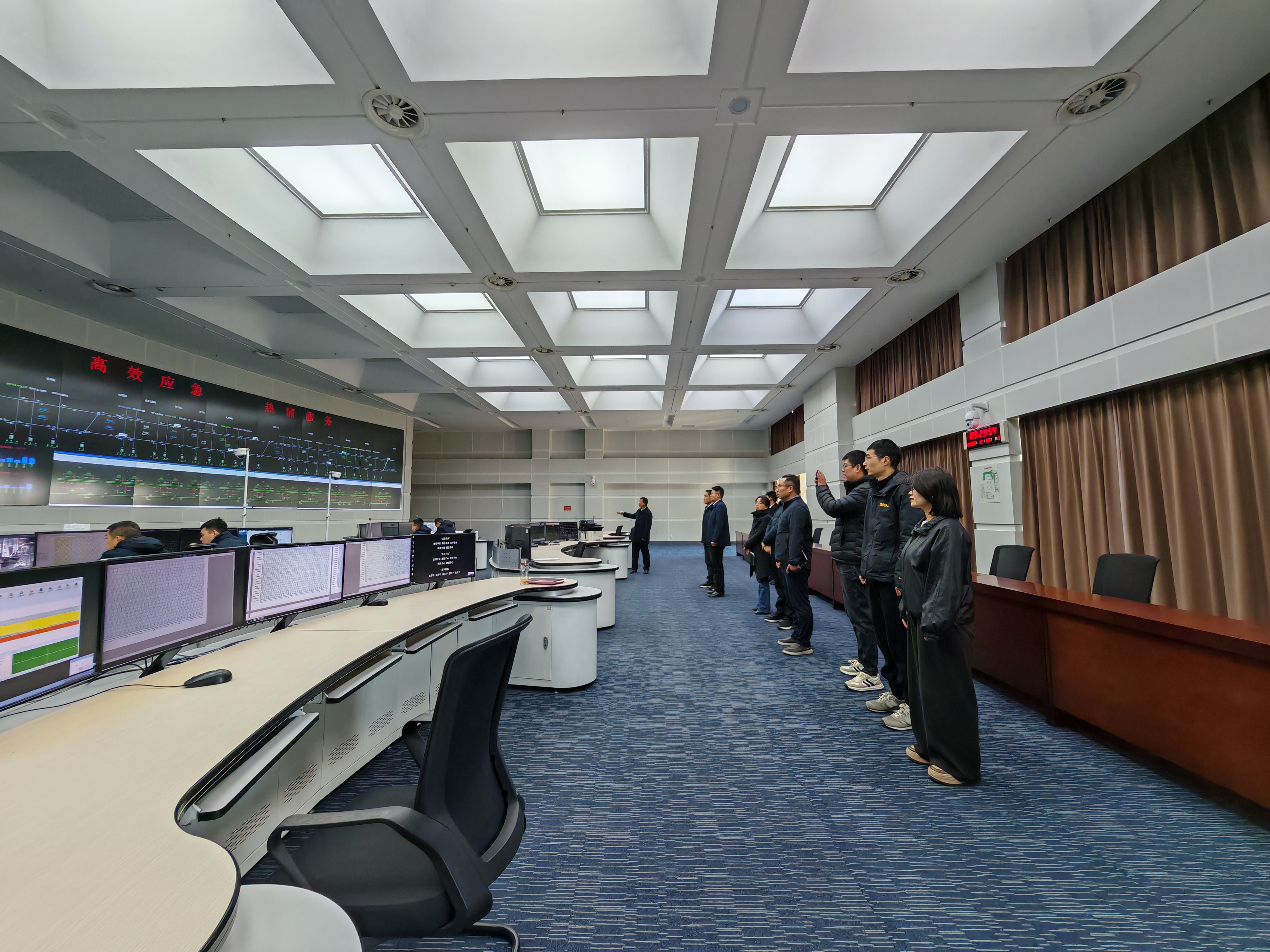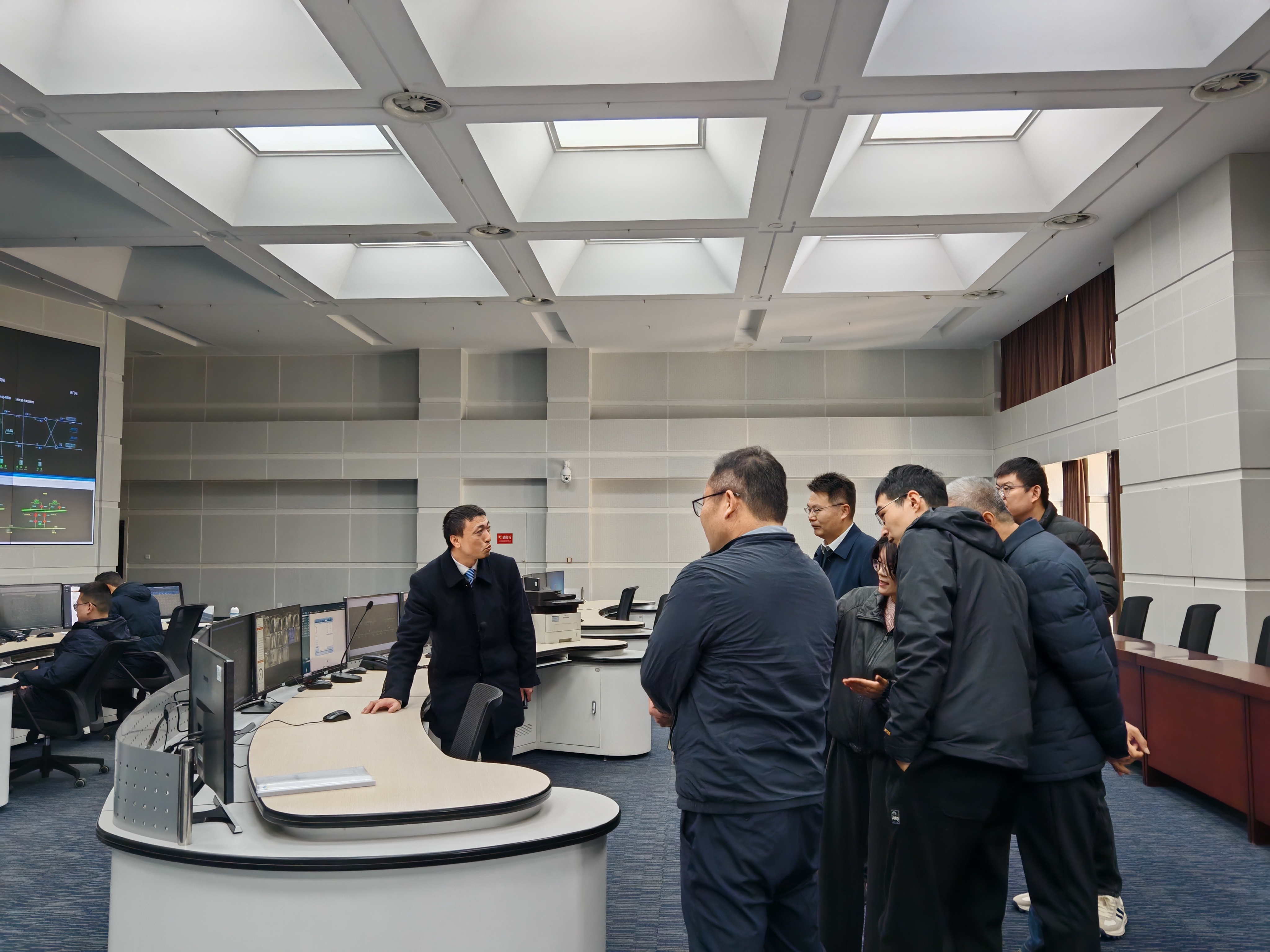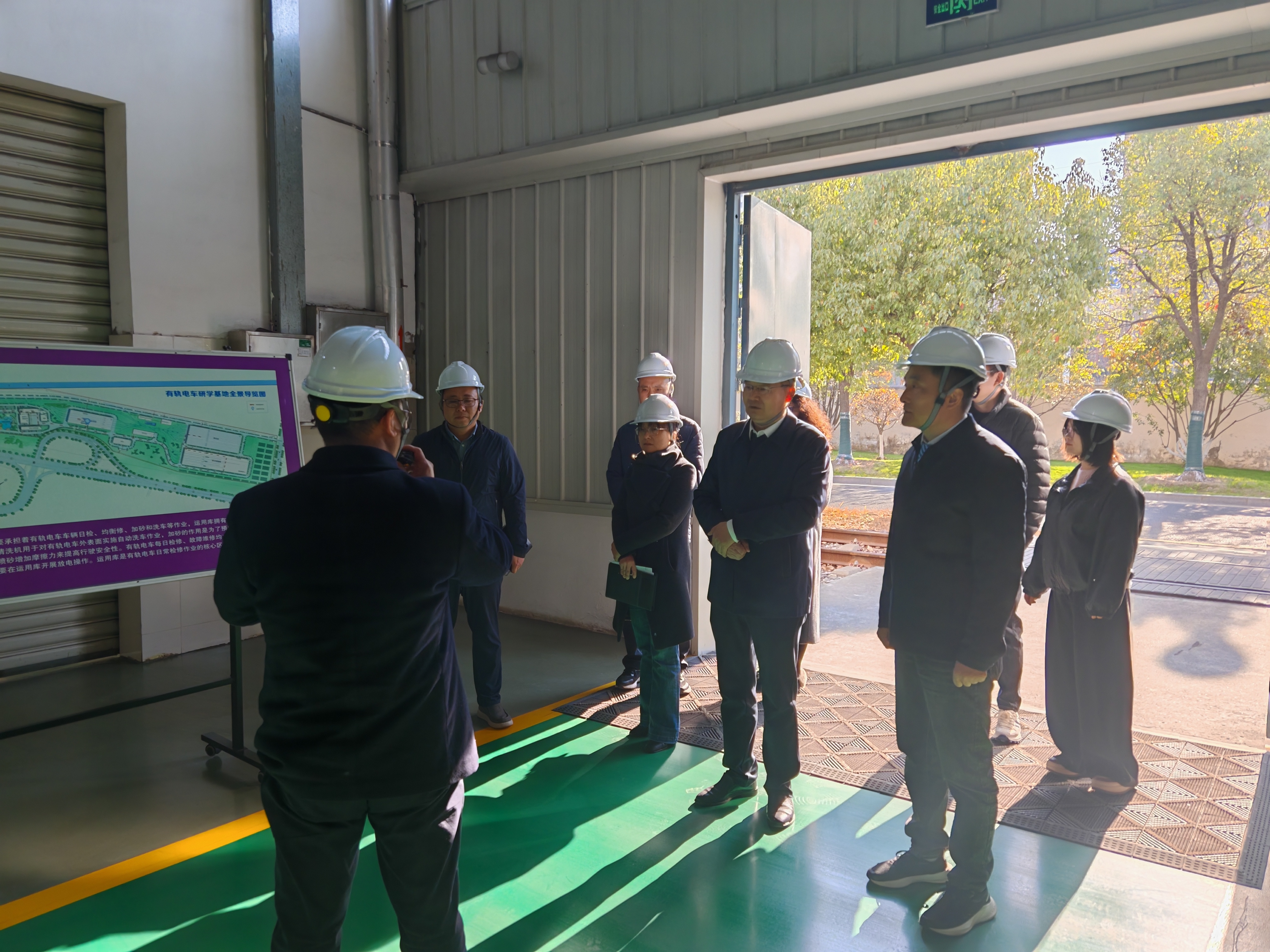 为深入贯彻落实国家关于深化产教融合、校企合作的决策部署,精准对接城市轨道交通行业发展需求,优化专业人才培养方案,提升毕业生就业质量,12月5日上午,物流与交通旅游学院院长周爱群、党总支书记何振华,产教融合处副处长张蓉蓉、物流与交通旅游学院党总支副书记孟英伟、行政助理李婧、城市轨道交通运营管理专业教师一行赴淮安市现代公共交通集团开展专题调研。此次调研围绕行业发展动态、企业用人需求、课程体系优化及实习就业合作等议题,与企业方进行了深入交流。调研伊始,在淮安市现代公共交通集团有限公司副总经理张永林及相关负责人陪同下,学院调研组一行首先参观了淮安现代有轨电车调度大厅和维修车库,实地了解有轨电车运营调度流程、智能监控系统运行情况及车辆日常检修维护工作场景。现代化的调度指挥系统、规范化的车辆维保流程及高效有序的运营管理给调研组留下了深刻印象,为后续专业教学改革与实践教学提供了宝贵的现场素材。