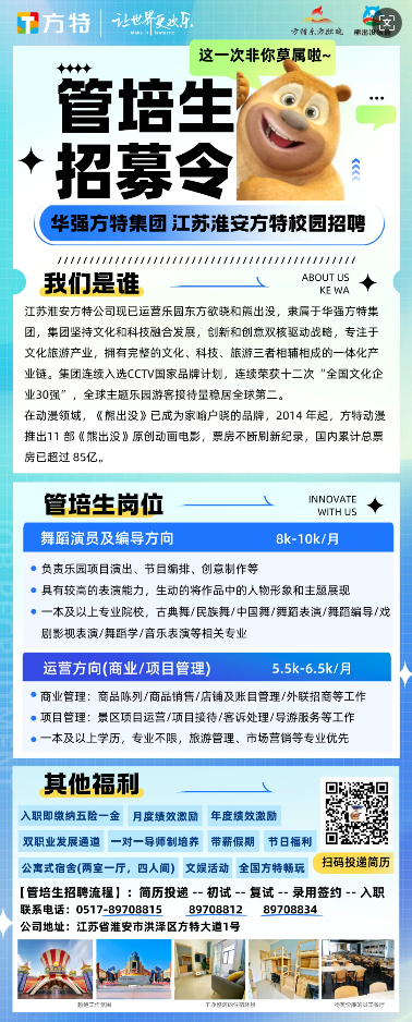 华强方特集团(淮安方特)2026届管培生春季校园招聘全面开启!