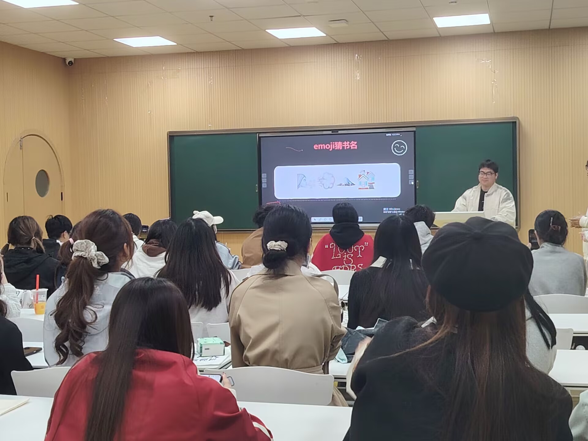 随后,趣味闯关环节正式开启,现场气氛热烈、互动不断。知识闯关环节中,同学们围绕文学常识、传统文化、物流相关书籍知识踊跃作答,在答题中巩固知识、收获书签、抽纸等实用奖品;听歌猜诗词环节,伴着熟悉的旋律,大家快速抢答诗词题目与作者,在歌声中重温经典诗词之美;emoji猜书名环节极具创意,一组组趣味表情符号化身经典书籍,充分考验大家的联想力与知识面;你划我猜环节将活动推向高潮,组员默契配合、生动比划,在欢声笑语中展现团队协作力,奖品可叠加领取,参与感满满。