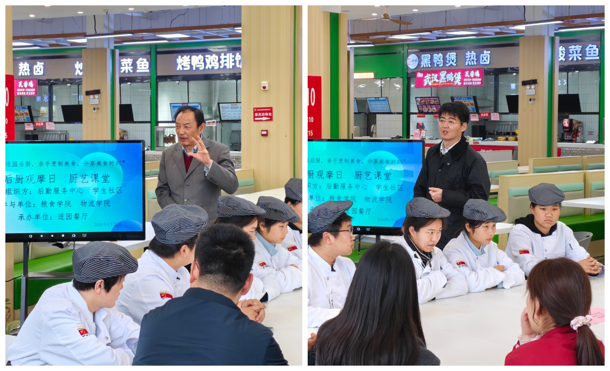 近日,物流学院携手适园餐厅共同举办“后厨观摩+厨艺课堂”劳动实践活动,将劳动教育融入生活实践,让同学们在动手实践中体悟劳动价值,在协作分享中收获成长。江苏财经职业技术学院关工委副主任蒋超五、学生社区教育管理服务中心主任林森出席活动。